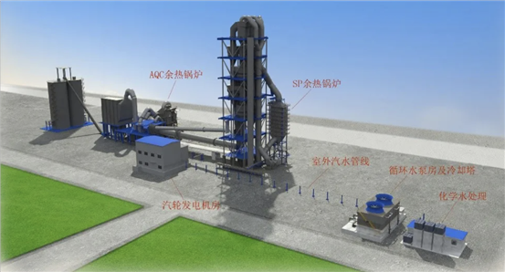 純低溫余熱發電技術,即是在新型干法生產線生產過程中,通過余熱回收裝置--余熱鍋爐將窯頭、窯尾排出大量低品位的廢氣余熱進行回收換熱,產生過熱蒸汽推動汽輪機實現熱能--機械能的轉換,再帶動發電機發出電能,并供給水泥生產過程中的用電負荷。從而不僅大大提高了水泥生產過程中能源的利用水平,對于保護環境,提高企業的經濟效益,提升產品的市場競爭力,起到了巨大的促進作用。