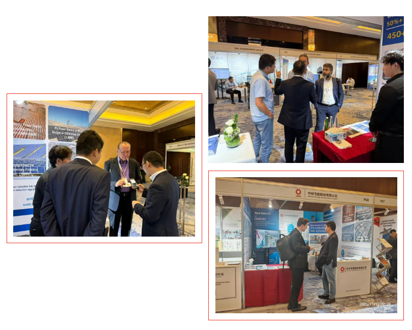 The on-site networking sessions yielded fruitful results. Sinoma Energy Conservation Ltd. staff visited the booths of new and long-standing customers, reviewing the operating performance of past projects with regional partners such as Saudi Arabia’s YCC and RCC, and carefully collecting suggestions on O&M optimization and technology upgrades.